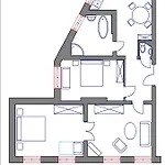 تتميّز هذه الشقة بالفناء ومنطقة الجلوس، وقد تم تجهيزها بلوازم كيّ الملابس ومكواة ولوح كيّ، بالإضافة إلى المرافق الحديثة مثل التلفزيون والتلفزيون بشاشة مسطحة مع قنوات فضائية. كما تمّ تجهيز مكان الإقامة بالأريكة. تتوفّر أسرّة مع الوسائد المضادة للحساسية تحت تصرف الضيوف. ويشتمل الحمام أيضًا على المرحاض المنفصل وحوض الاستحمام والدوش، بالإضافة إلى مجفف الشعر وملاءات الحمام.